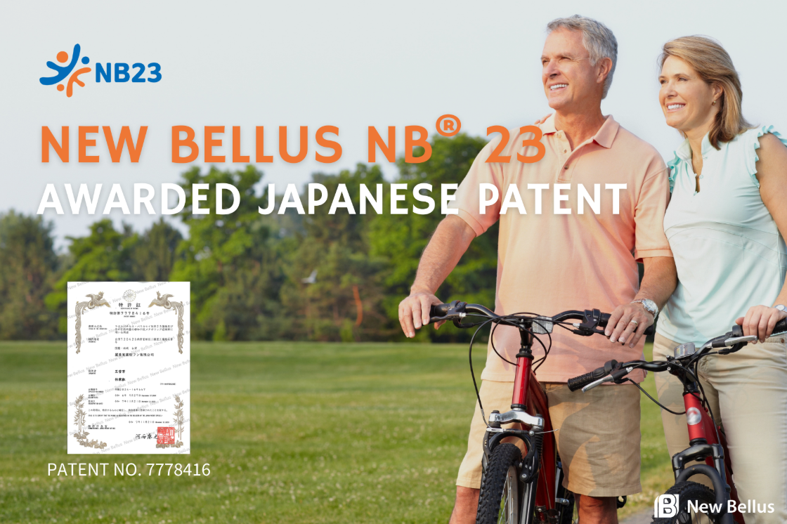 We are proud to announce that New Bellus' proprietary probiotic strain, New Bellus NB® 23 (Lactobacillus paracasei NB23), has been officially granted an invention patent by the Japan Patent Office, titled "Lactobacillus paracasei NB23 Strain and Its Use for Increasing Muscle Mass and Anti-Metabolic Syndrome" (Patent No. 7778416). This significant milestone validates the unique competitiveness of New Bellus NB® 23 in the fields of Muscle Health and Healthy Aging, offering global partners a scientifically backed, patent-protected foundation for developing high-performance products.