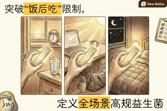 New Bellus 致力于透过高阶原料技术,协助品牌商打破这道门槛 。 借由专利五层包埋技术,您的产品能主打“全时段适用”的高阶诉求——无论是早起空腹的第一包补充,或是忙碌间隙的随手一包,皆能确保菌株安全通过体内环境考验 。